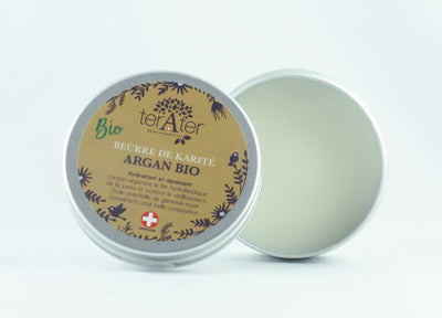 Le beurre de Karité Bio à l'huile d'argan est un indispensable soin de beauté. L'Argan est originaire du Maroc, cette huile, riche en vitamine E et en insaponifiables, est réputée pour ses propriétés nourrissantes et restructurantes. Sa teneur en antioxydants en fait un actif idéal pour les peaux sèches, matures et dénutries. Il s'utilise sur peau et cheveux hiver comme été et convient à toute la famille.