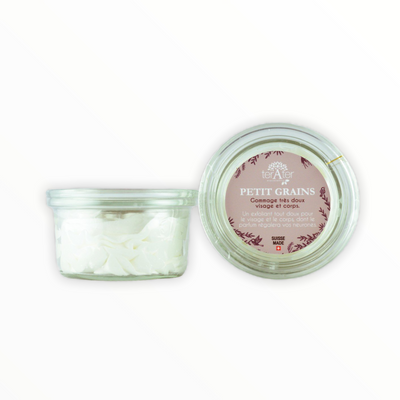 Cette formule exfoliante au bicarbonate de soude élimine les cellules mortes de la peau et permet de renouveler et régénérer la peau. Ce soin doux et polissant, au subtil note boisé et épicé, laisse la peau lisse, douce et lumineuse. Votre peau sera également hydratée grâce au beurre de Karité et à l'huile de coco bio qui vous laisseront un voile de douceur. Associé, au doux parfum de Petit grain bigarade, une huile essentielle connues pour ses propriétés relaxantes et équilibrante qui aide à calmer et apaiser les tensions. Très fin, il convient tout aussi bien au corps, les mains et le visage.
